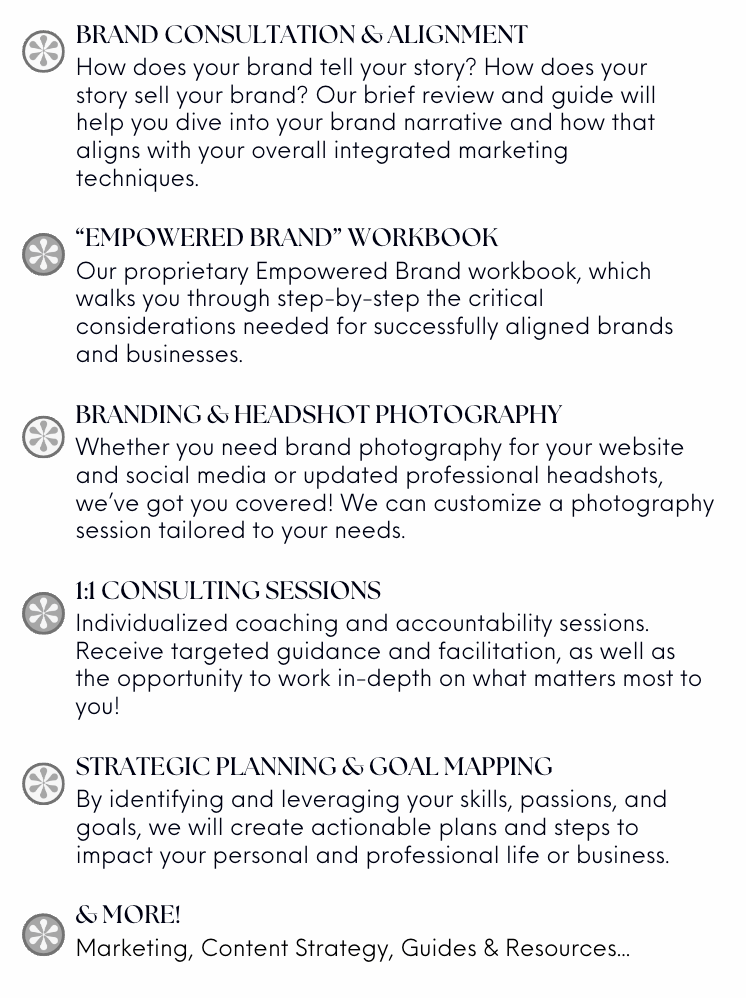 Our goal is to harness the power that exists at the intersection of strategic branding and personal development. Creating alignment between one’s passion, purpose, and brand leads to a strong foundation for personal and professional success.